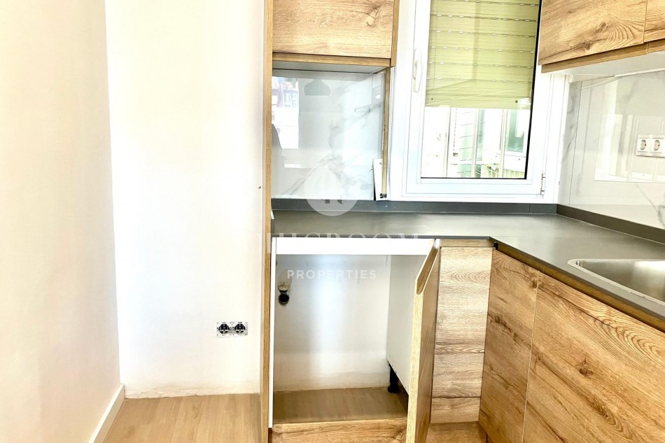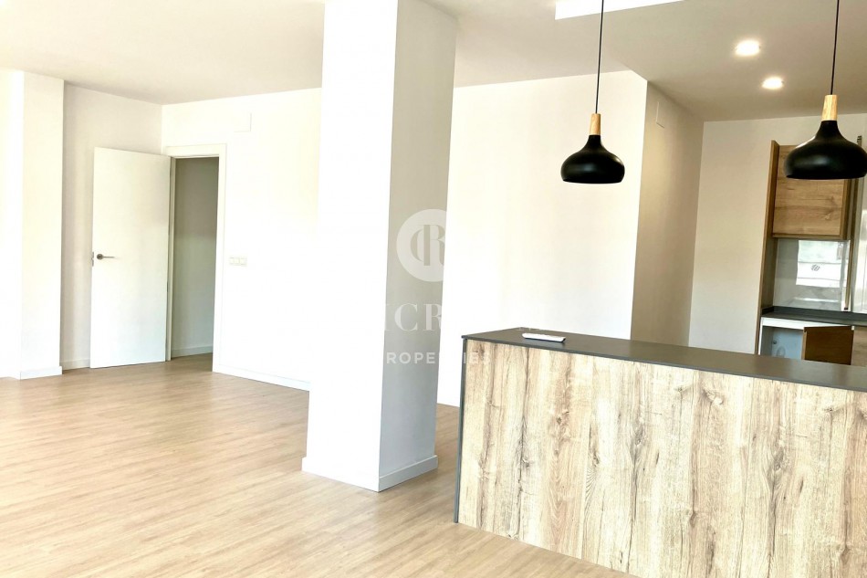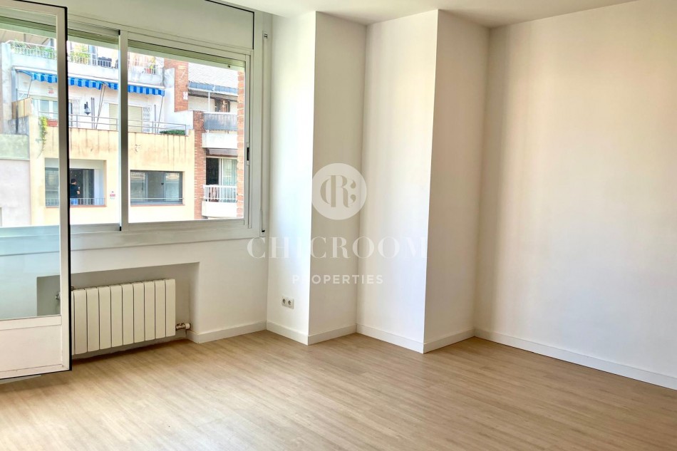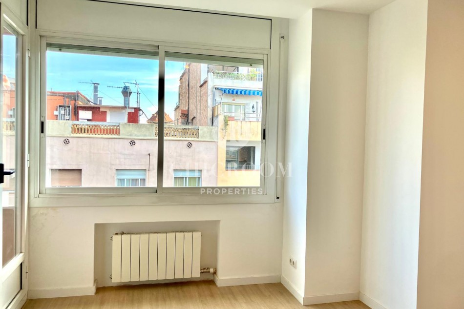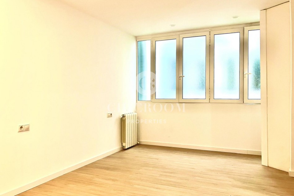 Since the building has a mezzanine, the apartment is on the 7th floor. It was recently renovated from four rooms to two rooms, one suite, and a single room, with two complete bathrooms. Both bedrooms have windows facing a bright and clean patio, a spacious living-dining space with an open kitchen which connects to a balcony facing Aribau street. From the balcony, you can see the view of Barceloneta and Tibidabo. It is a very bright and practical apartment. Perfect for a couple with one kid, or the single room could be an office or a library.