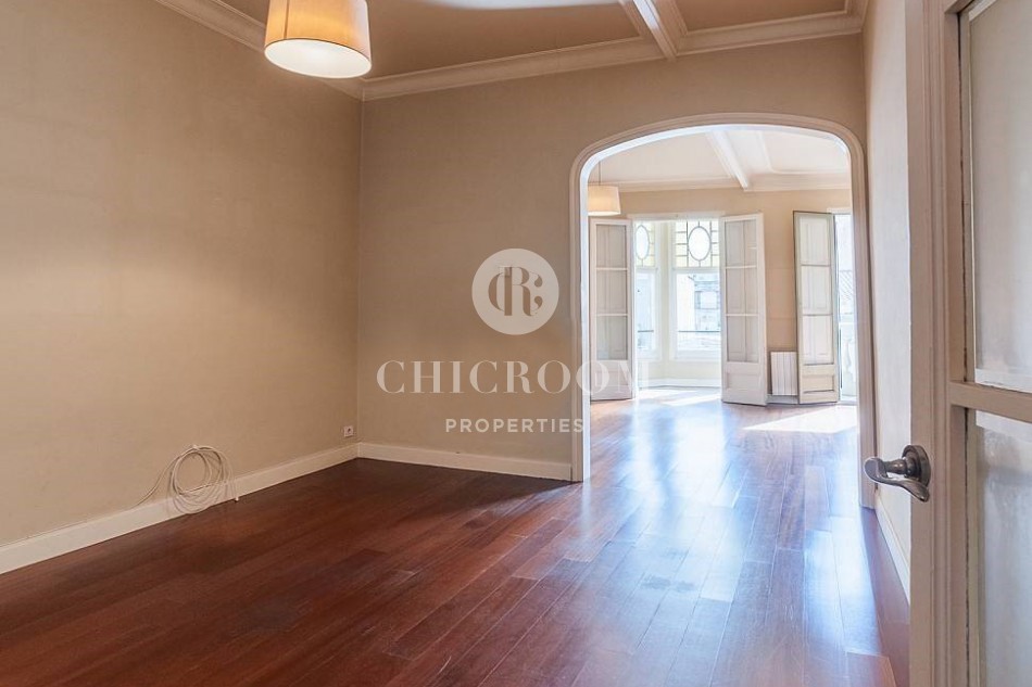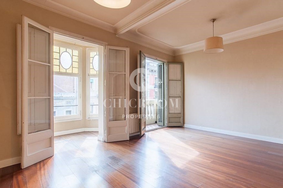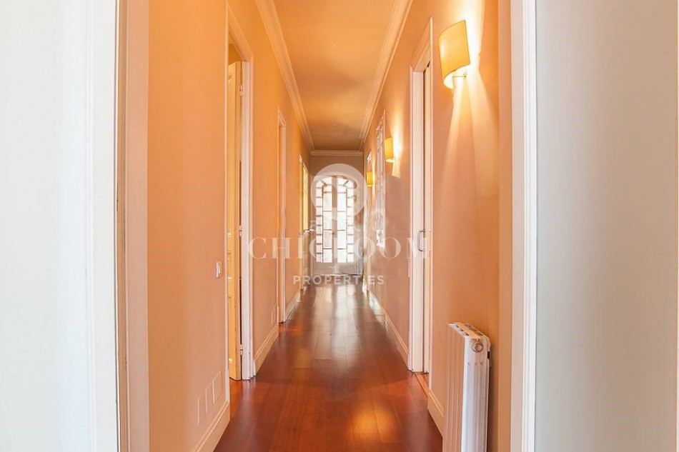 ChicRoom Properties is proudly represented this splendid 4 bedroom apartment for sale in Gracia. It is located in the most emblematic, cosmopolitan and majestic neighbourhoods of Barcelona. The built size is 165 m², it is orientated towards the south and the building was constructed in 1923. There are 2 apartments in each floor and the communal areas are carefully respected and the designers paid attention to the genuine style for each apartment. It was recently restored emphasising on the authentic elements which give worth and originality to it.