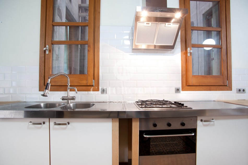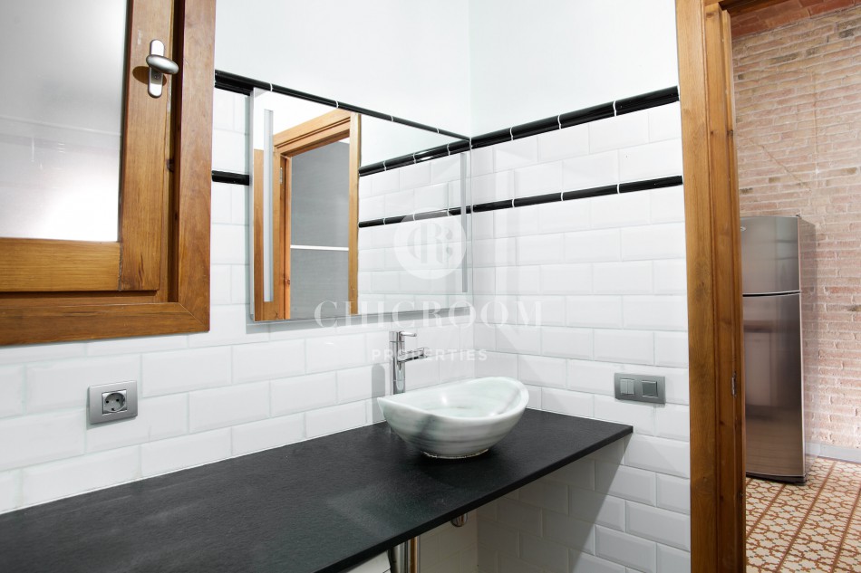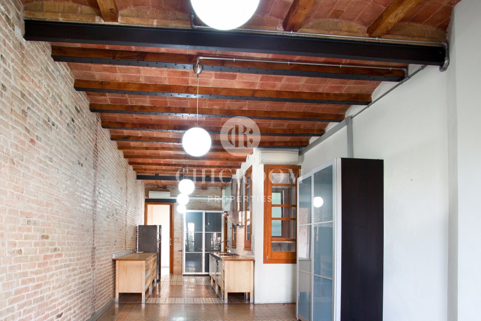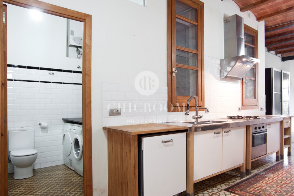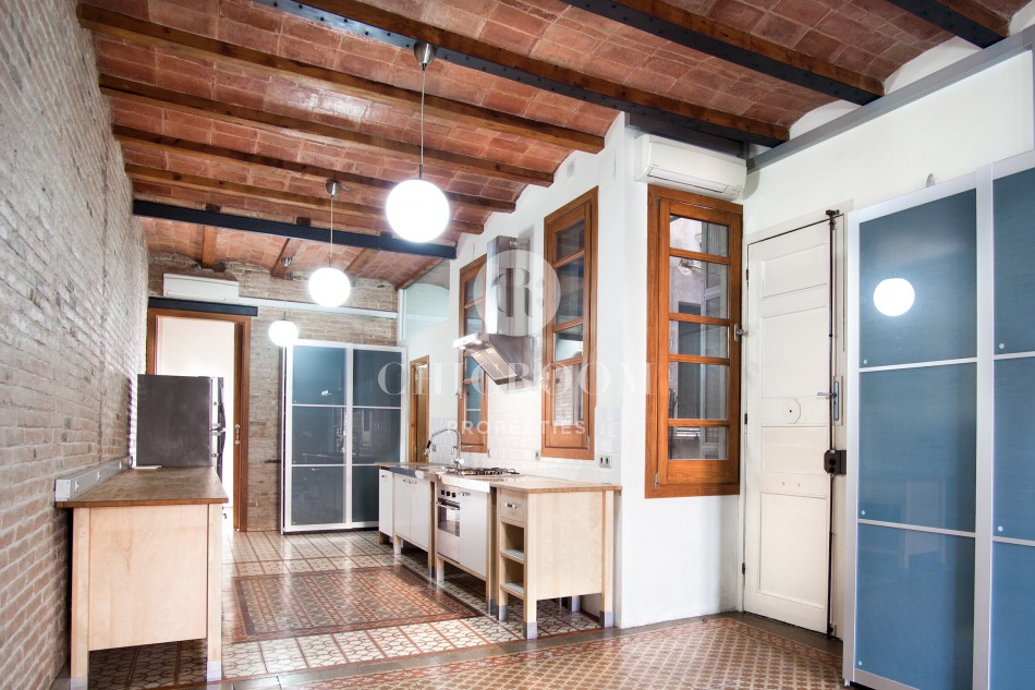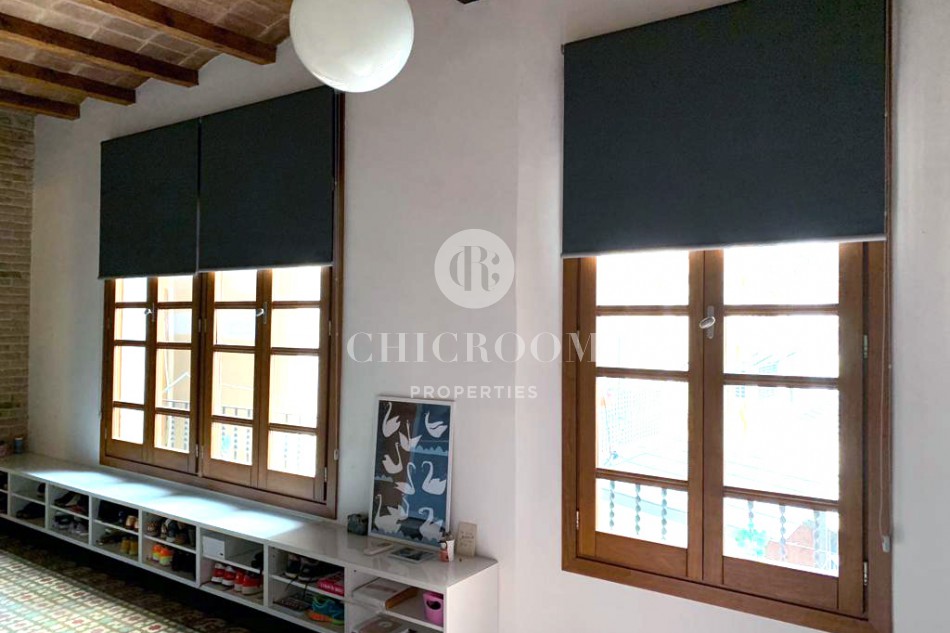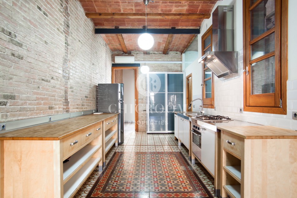 The typical Catalan vault on the ceilings with wooden exposed beams and brick arches have been well maintained. This responds to the floor paved with Catalan hydraulic tiles covering every room. Large windows together with the highness of the ceilings enables a lot of natural light to flood the whole property.