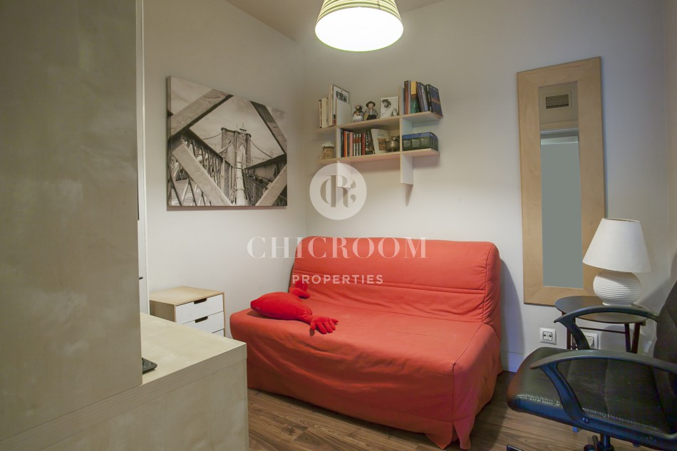 The main living area consists in a large room with two distinct zones: the living room and the dining room. A mini terrace works as an extension when the windows are open, especially during the hot days.