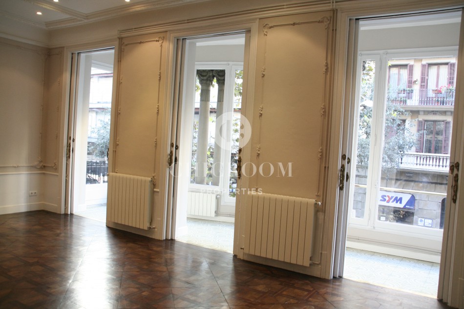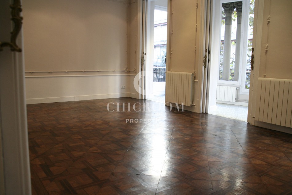 Apartamento de 4 habitaciones en venta con terraza en Eixample. Precioso apartamento de 170 m² de techos altos en finca modernista compuesto de un salón comedor de 50 m², 4 habitaciones, 30 m² de terraza, 12 m² de balcón y 3 baños completos. La amplia terraza, ideal en verano para hacer vida y disfrutar del sol, tiene un patio y ofrece bonitas vistas sobre la cuidad. El salón es muy luminoso, gracias a la luz natural, tiene ventanales y tiene acceso directo con la cocina. La habitación principal y otra habitación tienen baños en suite, una es individual y una de las 4 habitaciones es de tipo despacho. La habitación principal tiene salida a terraza de patio.
