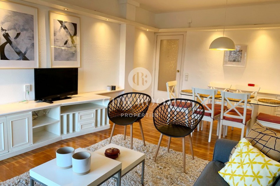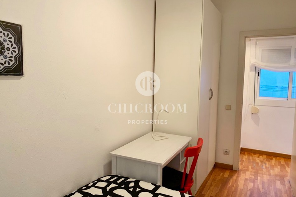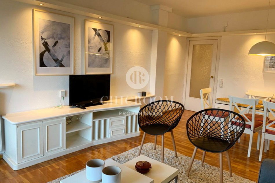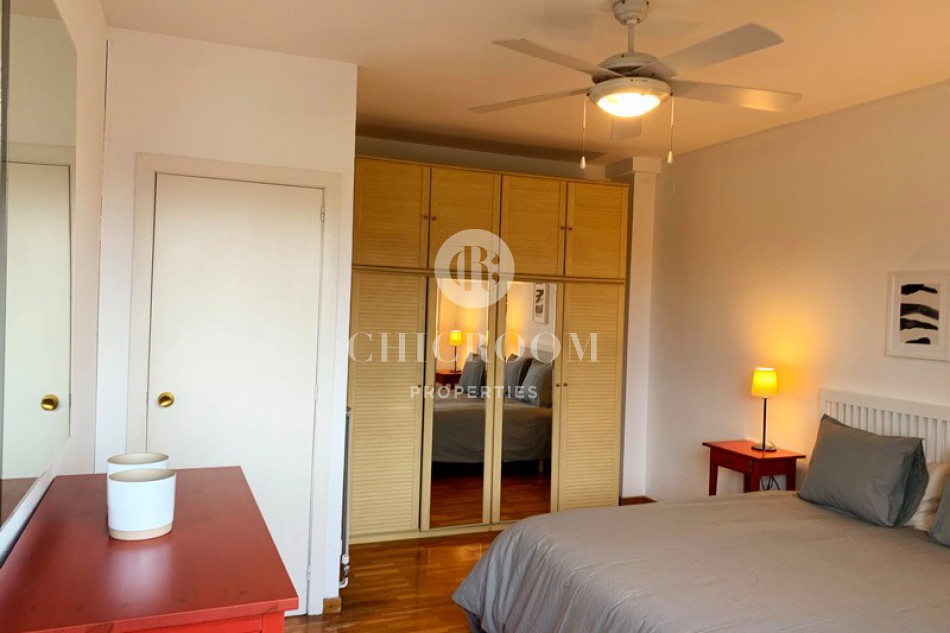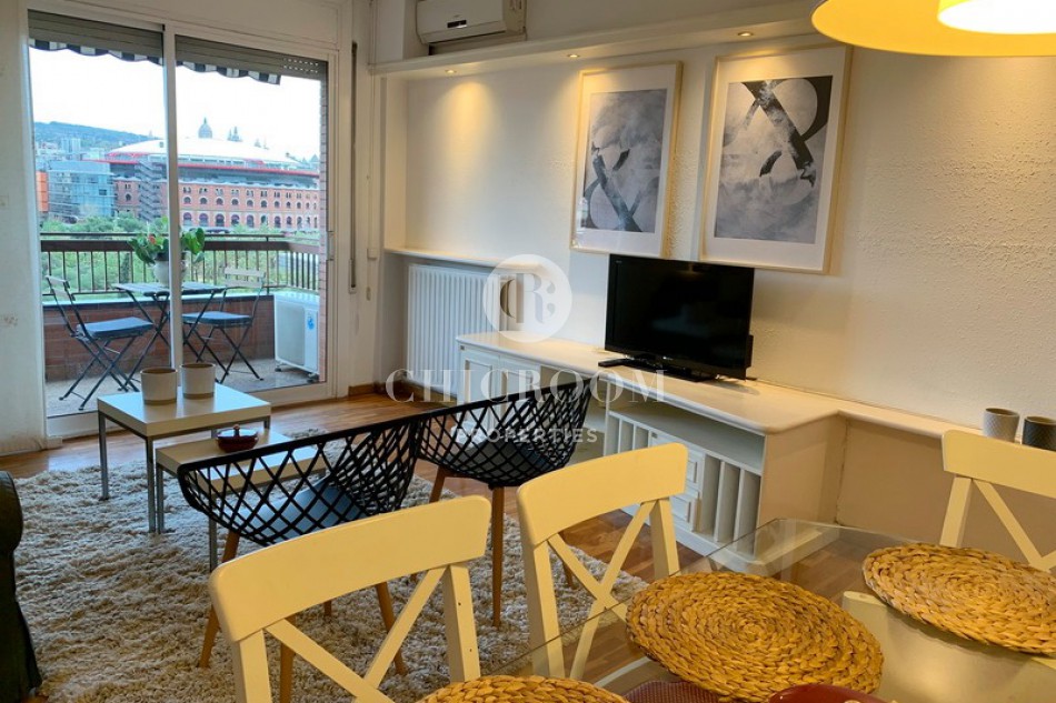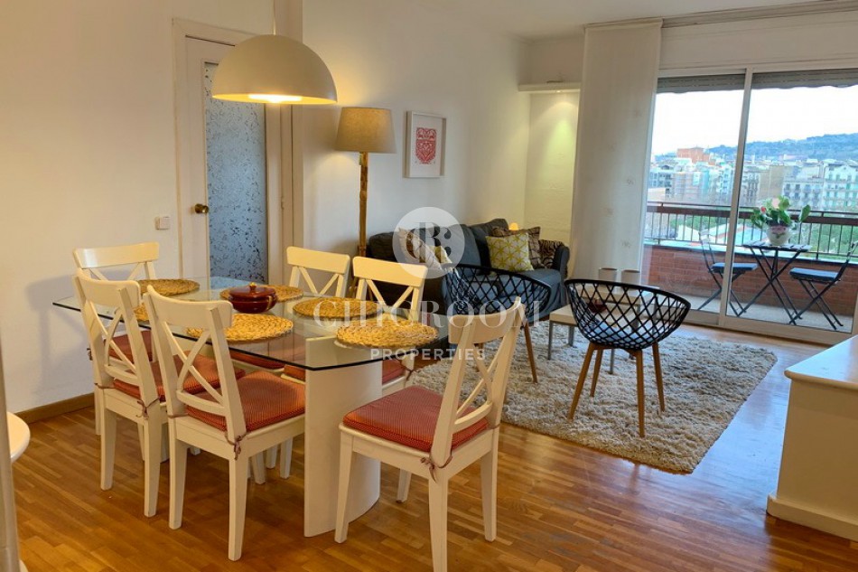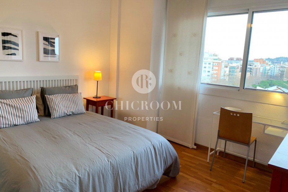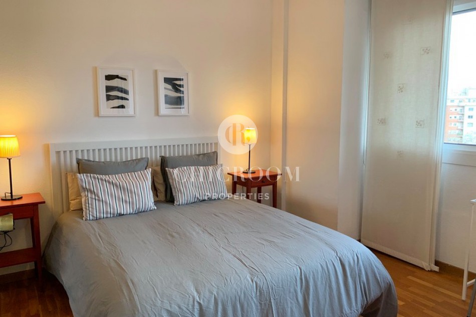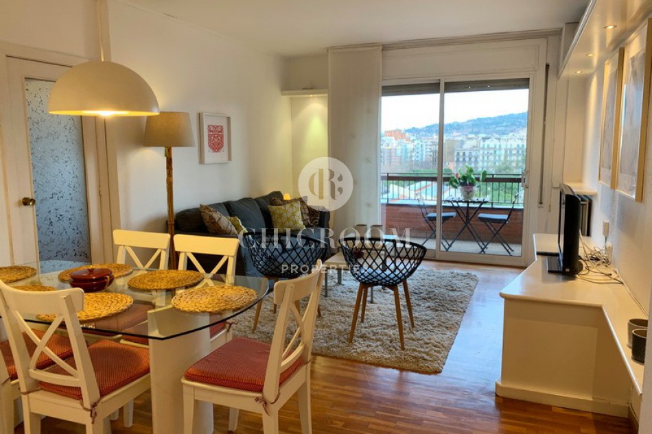 Este apartamento amueblado de 3 dormitorios en alquiler en Barcelona tiene vistas impresionantes del parque y la ciudad que se puede disfrutar desde una terraza encantadora y privada. Se encuentra en el quinto piso de un edificio moderno con ascensor y se extiende sobre 100m2. El apartamento está situado en una ubicación ideal con conexiones excelentes de transporte público. Viene completamente amueblado con muebles cómodos y elegantes en cada habitación.