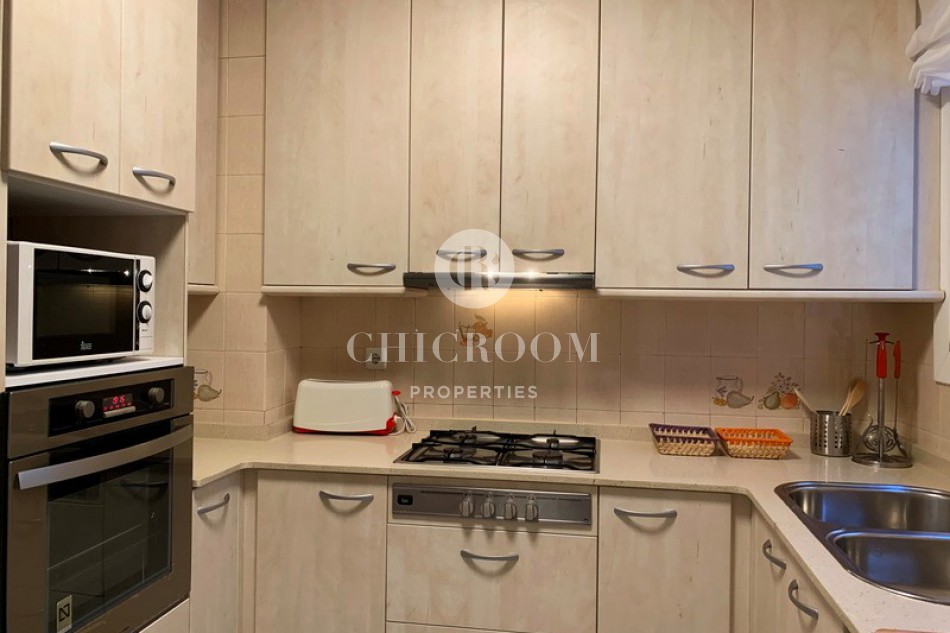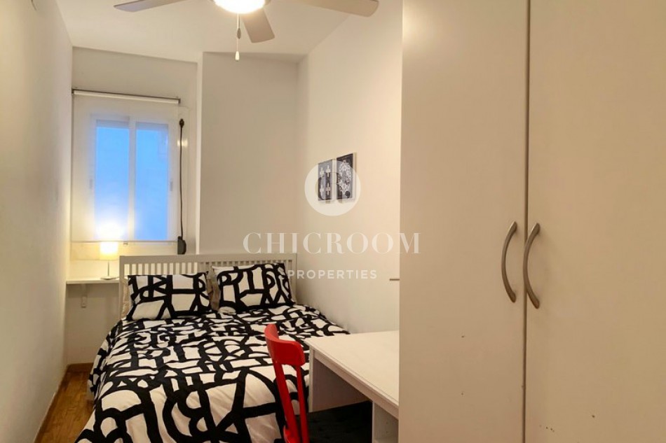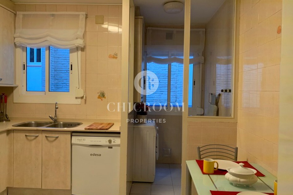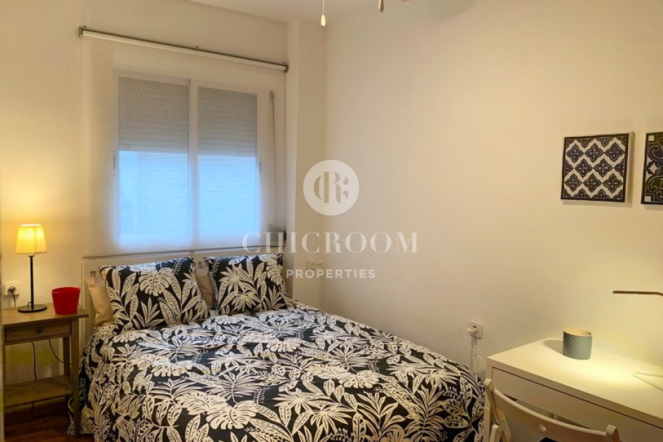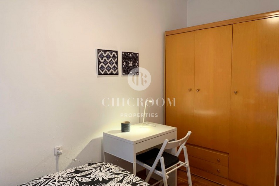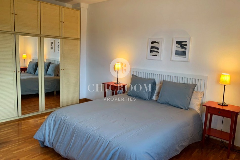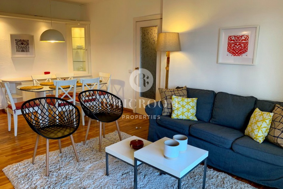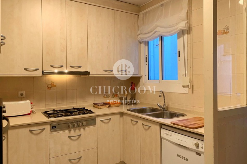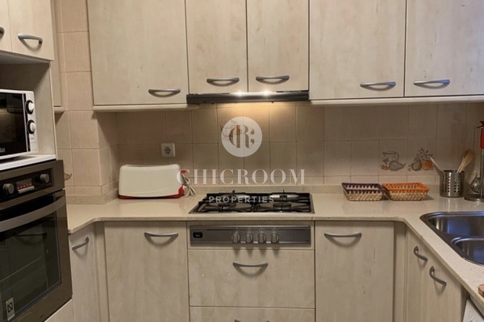 Este apartamento amueblado de 3 dormitorios en alquiler en Barcelona tiene vistas impresionantes del parque y la ciudad que se puede disfrutar desde una terraza encantadora y privada. Se encuentra en el quinto piso de un edificio moderno con ascensor y se extiende sobre 100m2. El apartamento está situado en una ubicación ideal con conexiones excelentes de transporte público. Viene completamente amueblado con muebles cómodos y elegantes en cada habitación.