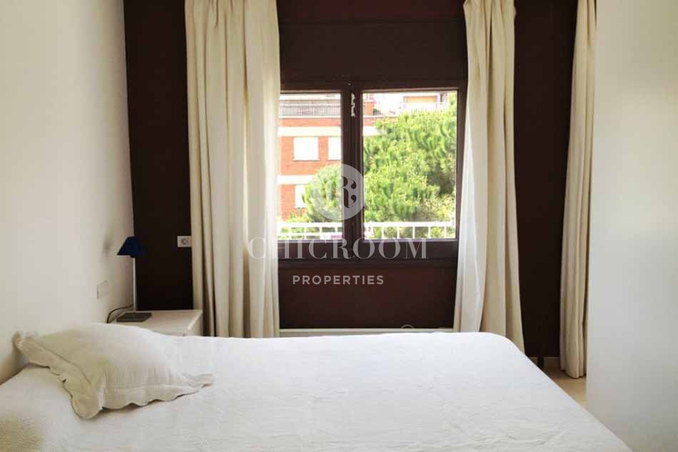 Sant Gervasi appartement 2 chambres à louer dans le quartier Sarria. Il se compose d'un salon et d'une cuisine ouverte dans la même pièce qui accède à une terrasse ensoleillée. C'est une cuisine entièrement équipée avec machine à lave-sécheuse et lave-vaisselle. Cet appartement calme offre une vue sur une zone verte. Aussi, il a une chambre double avec placard et une chambre simple avec près qui partagent deux salles de bain complètes, l'une d'elles avec baignoire et l'autre a une douche. Il dispose d'un chauffage électrique au radiateur et de la climatisation.