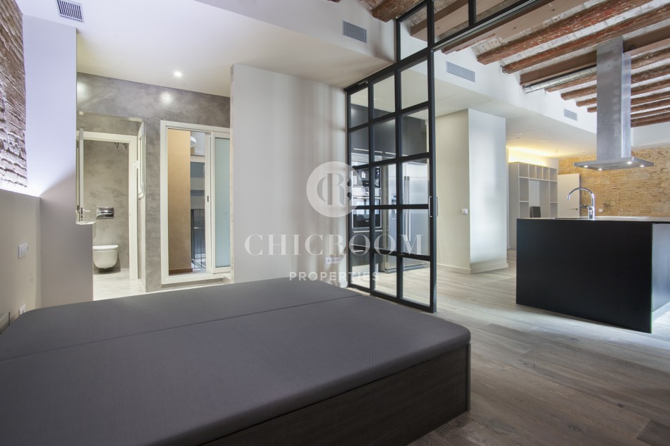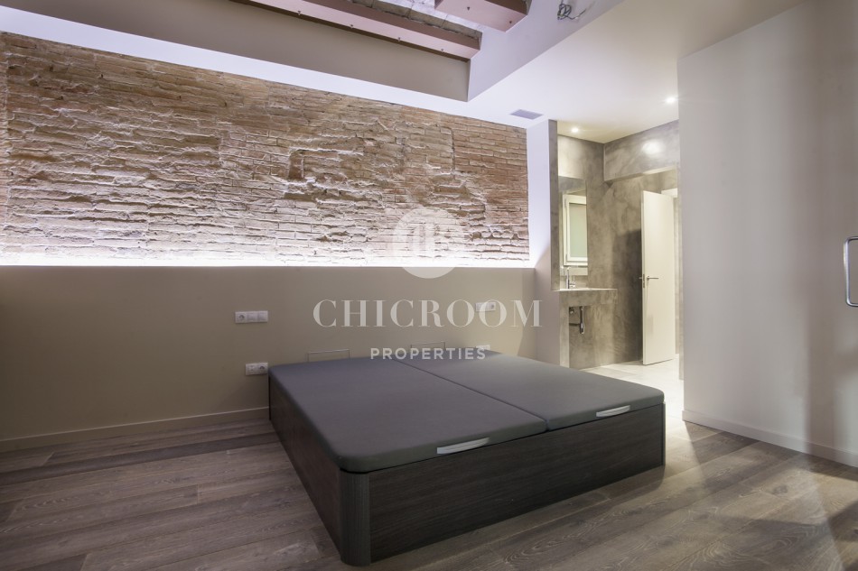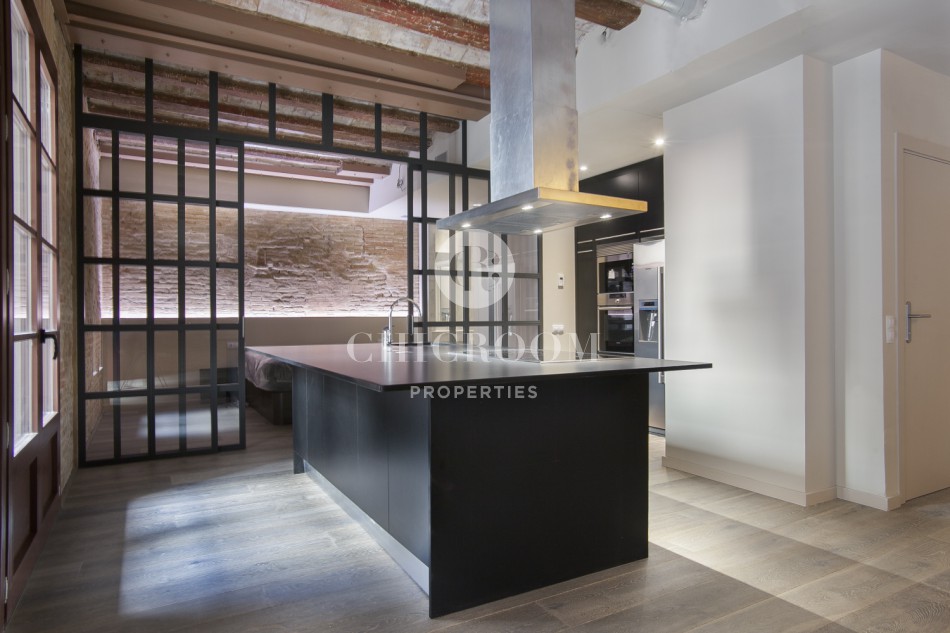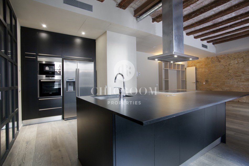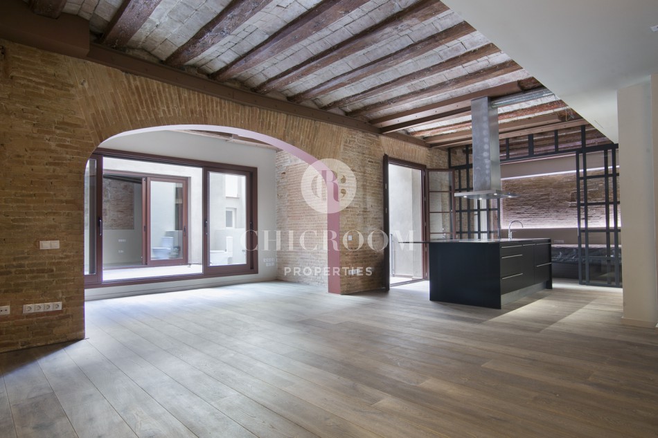 ChicRoom Properties a l'honneur de vous présenter un appartement à vendre dans Raval. Il s'agit d'un grand appartement de grand design et totalement rénové situé dans le centre ville de Barcelone. Il se compose de deux chambres, une cuisine entièrement équipée, deux salles de bains, une salle d'eau, une terrasse et un balcon. La superficie totale est de 121 m² et le sol est en parquet. La cuisine est équipée avec four, microonde, frigo et une grande table pratique avec la quelle vous pouvez l'utiliser pour la cuisine ou pour y manger.