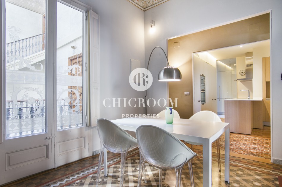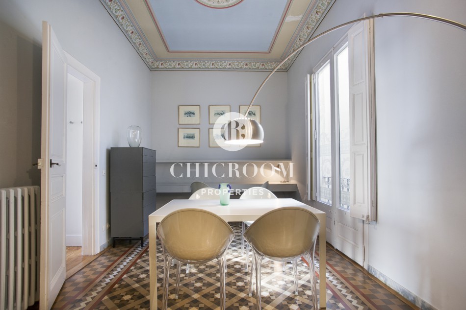 ChicRoom Properties vous présente un somptueux appartement de 110 m2 à louer dans Eixample Dreta à Barcelone situé au coeur de la ville dans un magnifique bâtiment typique du quartier de l'Eixample.