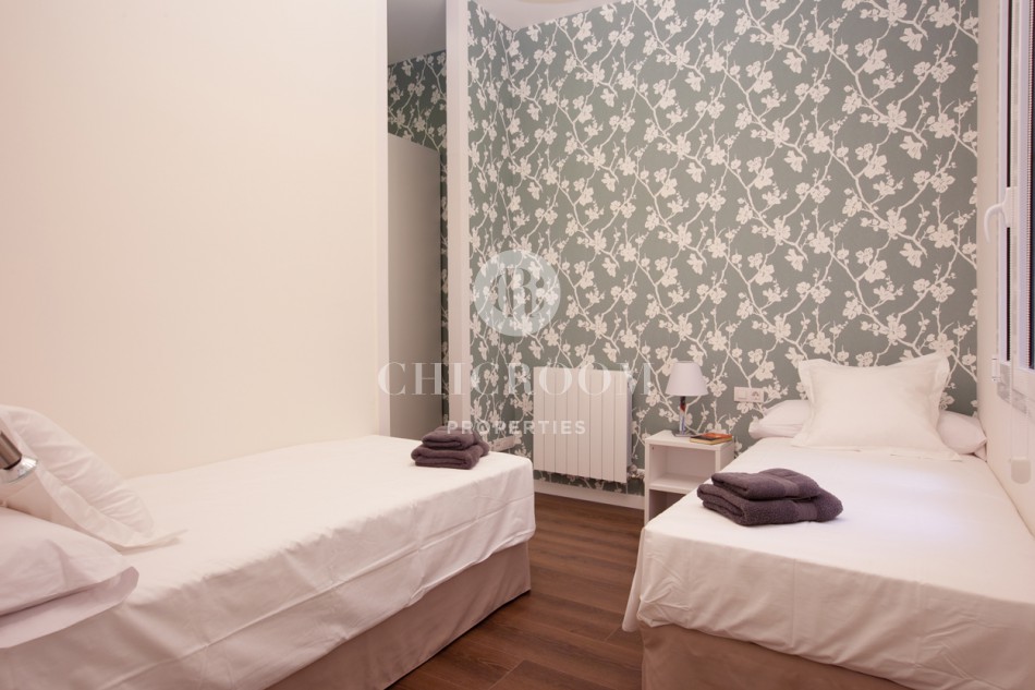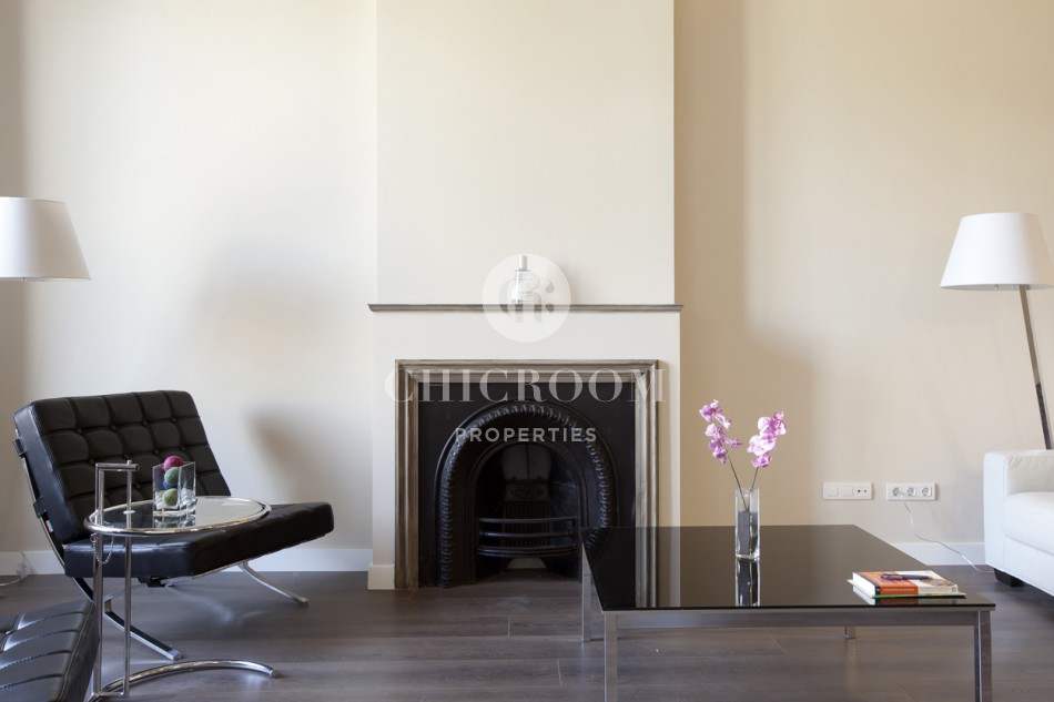 La progettazione del piano massimizza lo spazio 140m2 di proprietà, e ci sono pavimenti in legno nelle zone soggiorno e camere da letto. Esso comprende tre camere da letto con letti singoli che possono essere uniti o separati in base alle esigenze del cliente. Vi è una sala da pranzo luminosa, un ampio salone con angolo lettura e camino, e due bagni, uno con vasca. Completamente ristrutturato, ed è dotata di tutto il necessario per preparare comodamente i pasti. L'arredamento di lusso fanno di questo caldo e accogliente spazio ideale per godersi un soggiorno temporaneo in città.