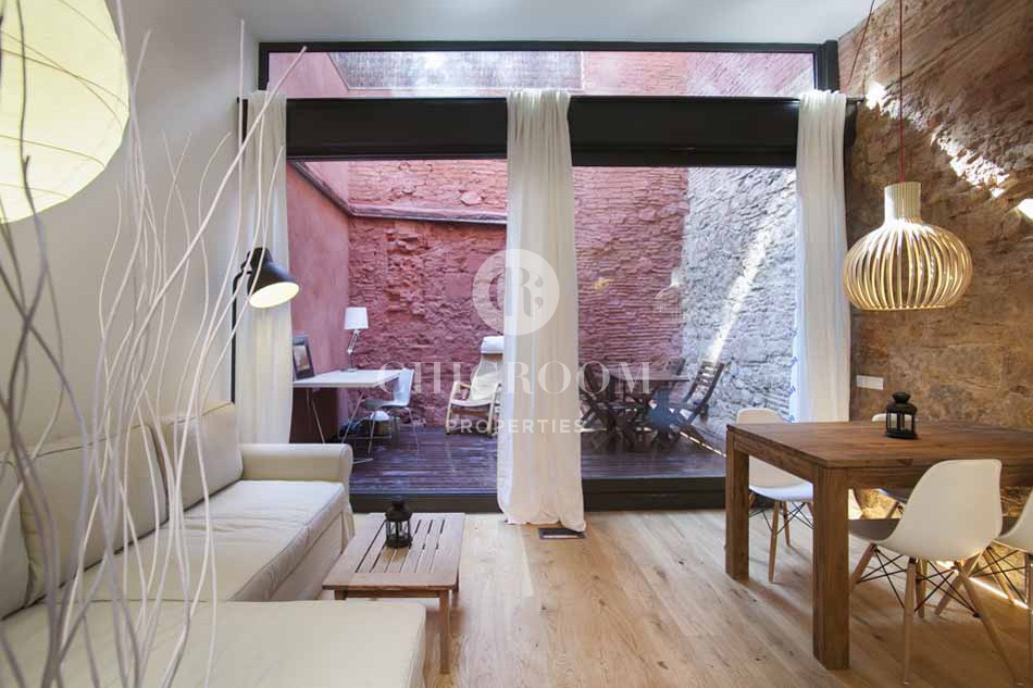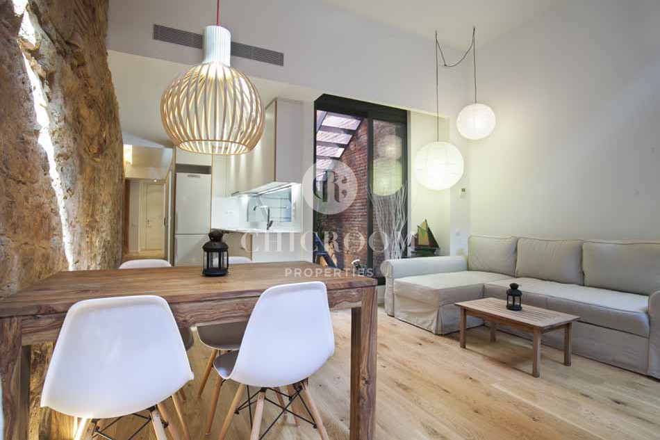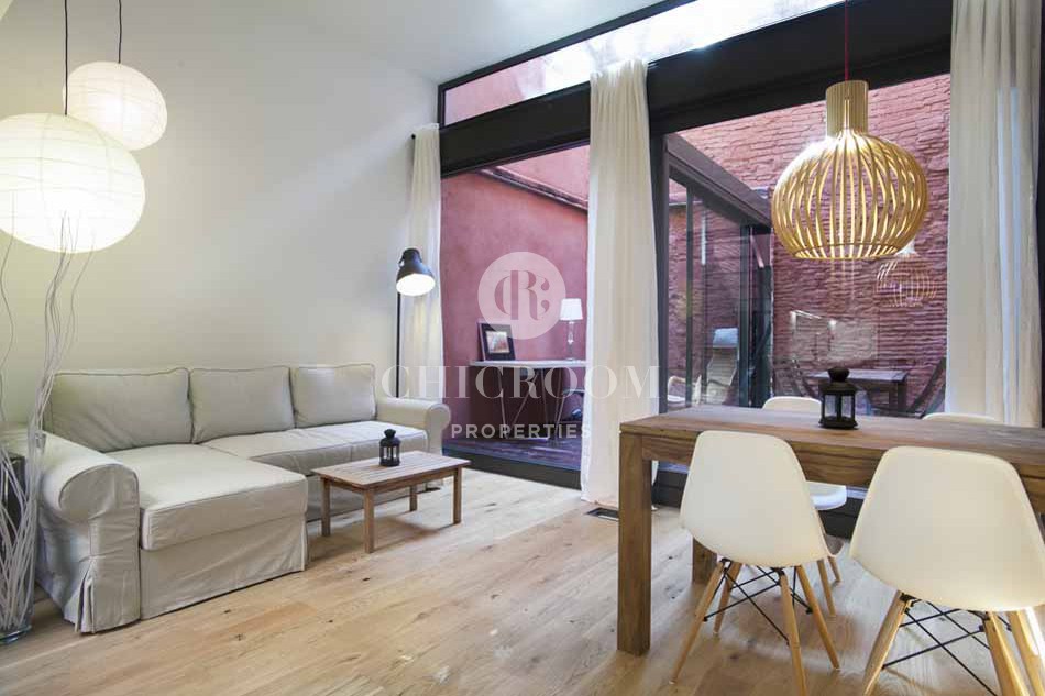 Favoloso loft arredato in affitto a Barcellona a Sant Pere, nel cuore di Barcellona. L'appartamento si trova nello storico Palau Nonell nel Quartiere Gotico della città. Completamente ristrutturato e ridisegnato dal famoso studio di architettura Juli Pérez-Català, rispettando tutti gli elementi antichi perfettamente combinati con elementi architettonici più moderni. La caratteristica principale è la luce che inonda tutti gli spazi fornendo una vera sensazione di comfort. Il loft dispone di una camera matrimoniale con bagno, studio a vista, soggiorno con angolo cottura e due fantastici terrazzi con una superficie di 40 mq piacevoli in ogni momento.