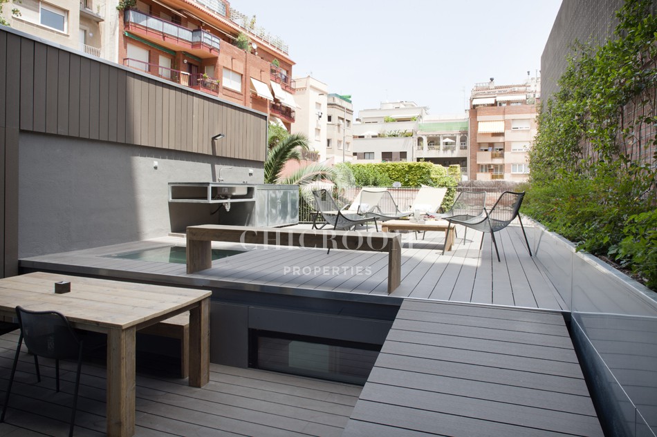 In affitto loft arredato Sarria terrazzo. ChicRoom Properties è orgogliosa di presentarti un loft arredato in affitto a Sarria con terrazza. Si tratta di un appartamento di 160 m² con finiture eccellenti e con un design e un comfort elevati che si trova in un complesso residenziale tranquillo e di lusso a Barcellona.