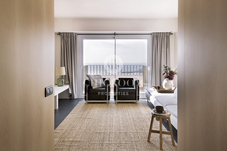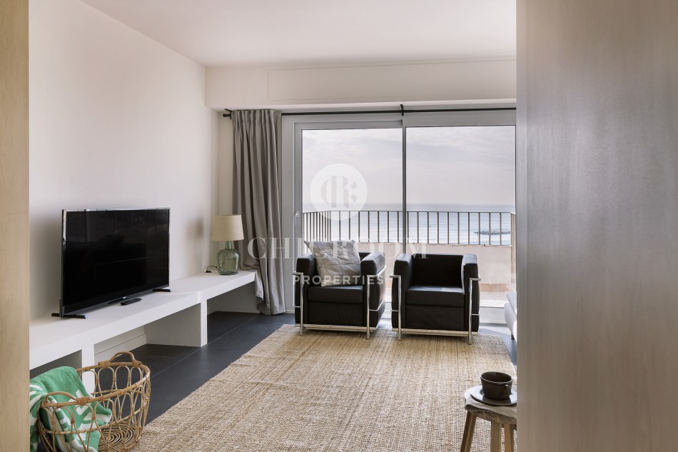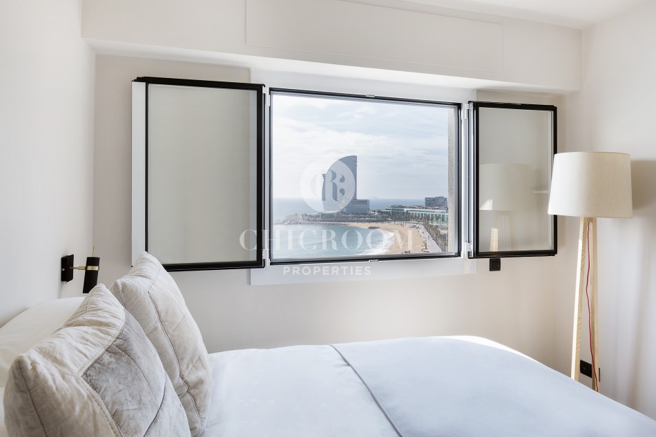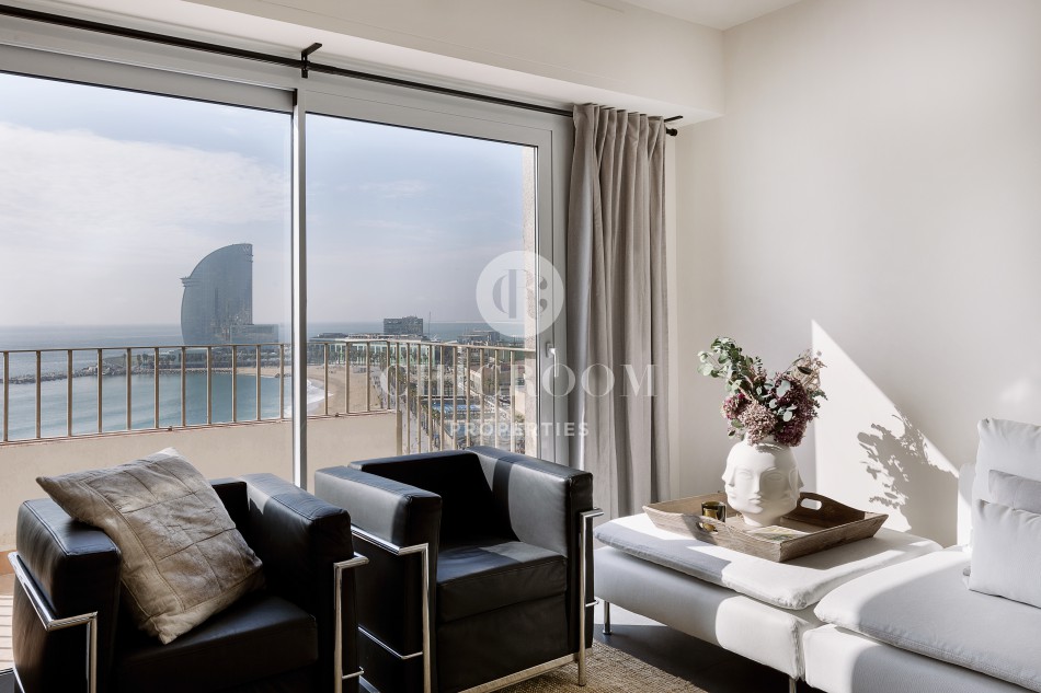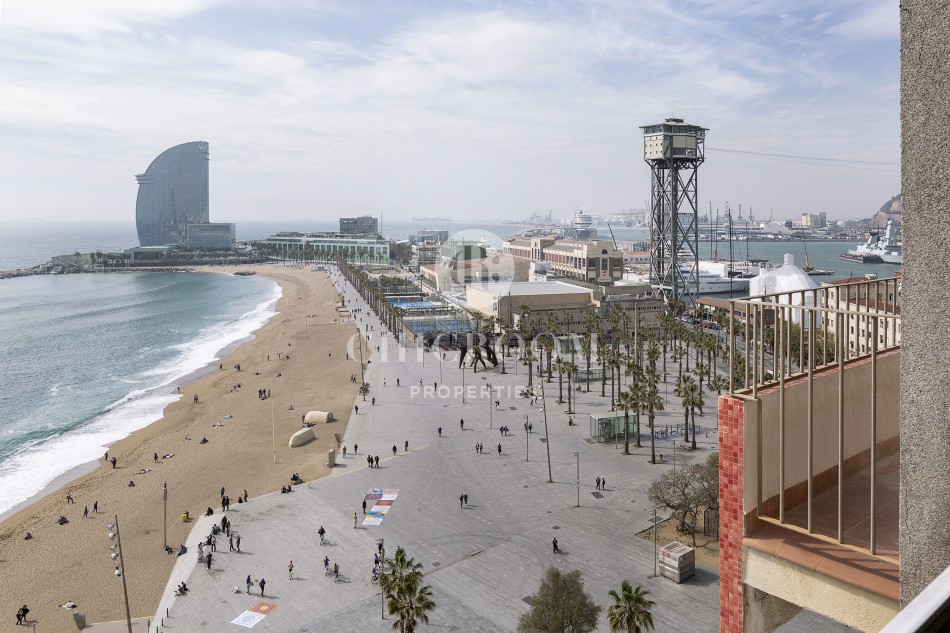 Il balcone funziona come un'estensione del soggiorno, che è separato da grandi finestre con doppi vetri. Questo spazio è particolarmente confortevole e gode di una splendida vista sulla spiaggia della Barceloneta. Quando apri le finestre puoi rilassarti sul divano con il suono delle onde sullo sfondo.