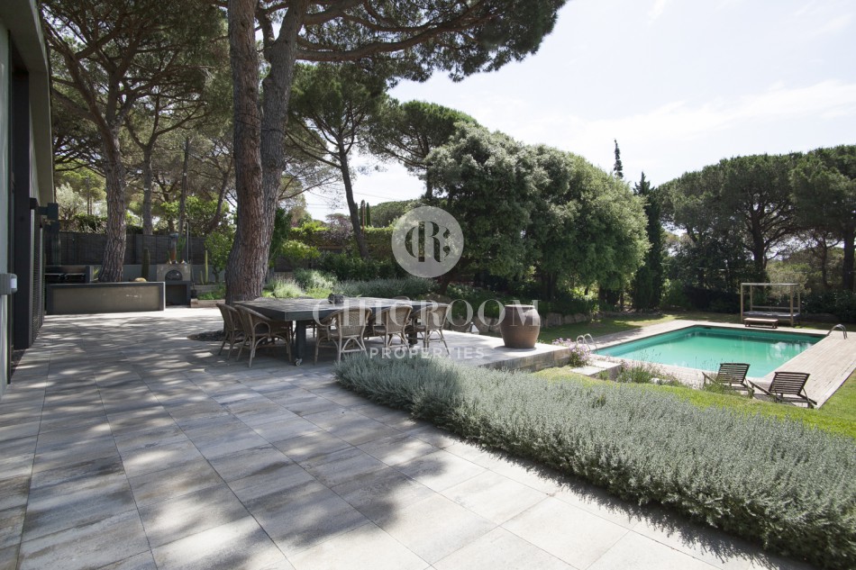 Circondata da una cornice verdeggiante e situata in una tranquilla zona residenziale, questa casa con 5 camere da letto e piscina in affitto a Sant Andreu de Llavaneras è pronta per i nuovi inquilini.