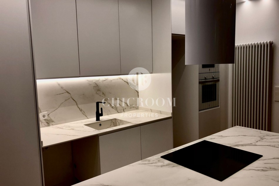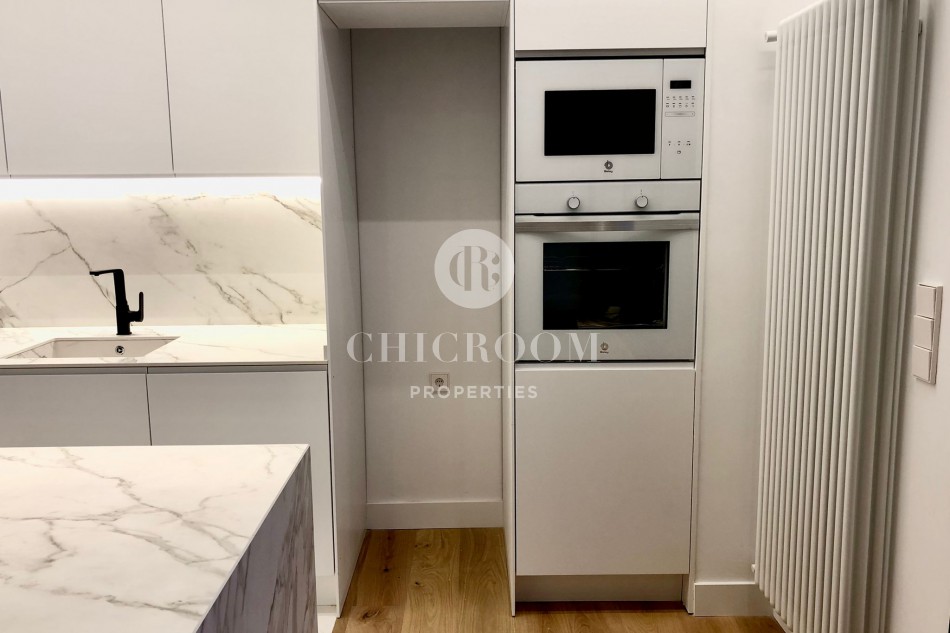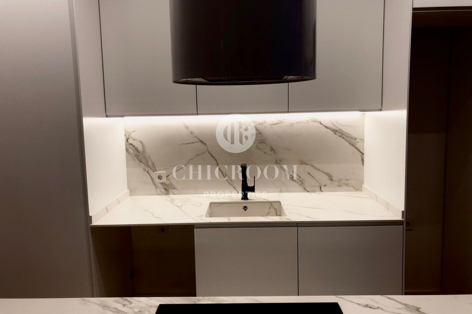 Soggiorno con cucina aperta attrezzata con elettrodomestici di marca premium e con accesso diretto a un'impressionante terrazza di oltre 150 m2, il desiderio di ogni inquilino sono questi momenti, ideali per riunioni di famiglia e godersi la calda estate a Barcellona.